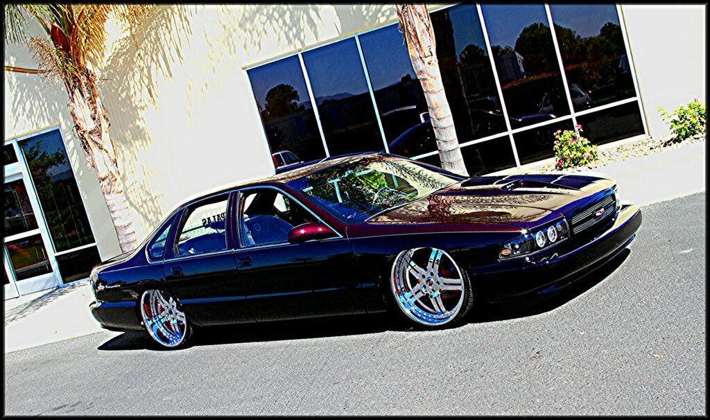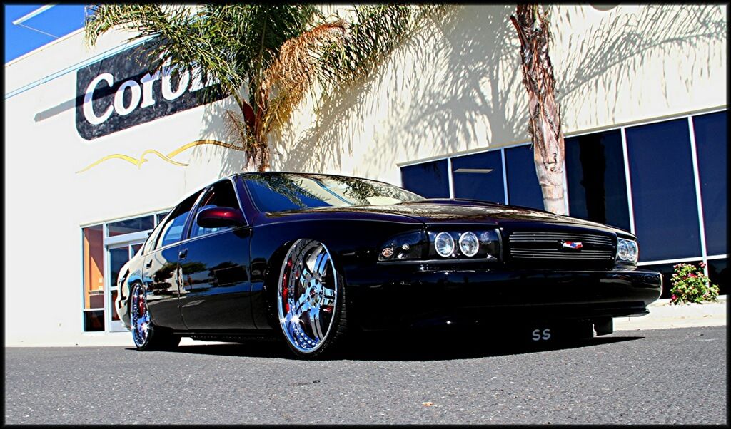 urethane bushings & new ball joints on front powder coated control arms. powder coated 2in dropped Bell tech spindles. powder coated cross drilled rotors. rebuilt powder coated calipers. stainless steel braided brake hoses. all new brake lines. new parking brake cables. new Mooge tie rods,center link, idler arm. UMI adjusting sleeves.frame powder coated. Energy body mount kit. Spohn rear extended control arms & sway bars. AF135 Asanti wheels 22x9 in front 22x11 in rear.custom SS center caps. 245/30ZR22 front tires 305/25ZR22 rear tires. under carriage prepped and painted with gloss black POR15.
